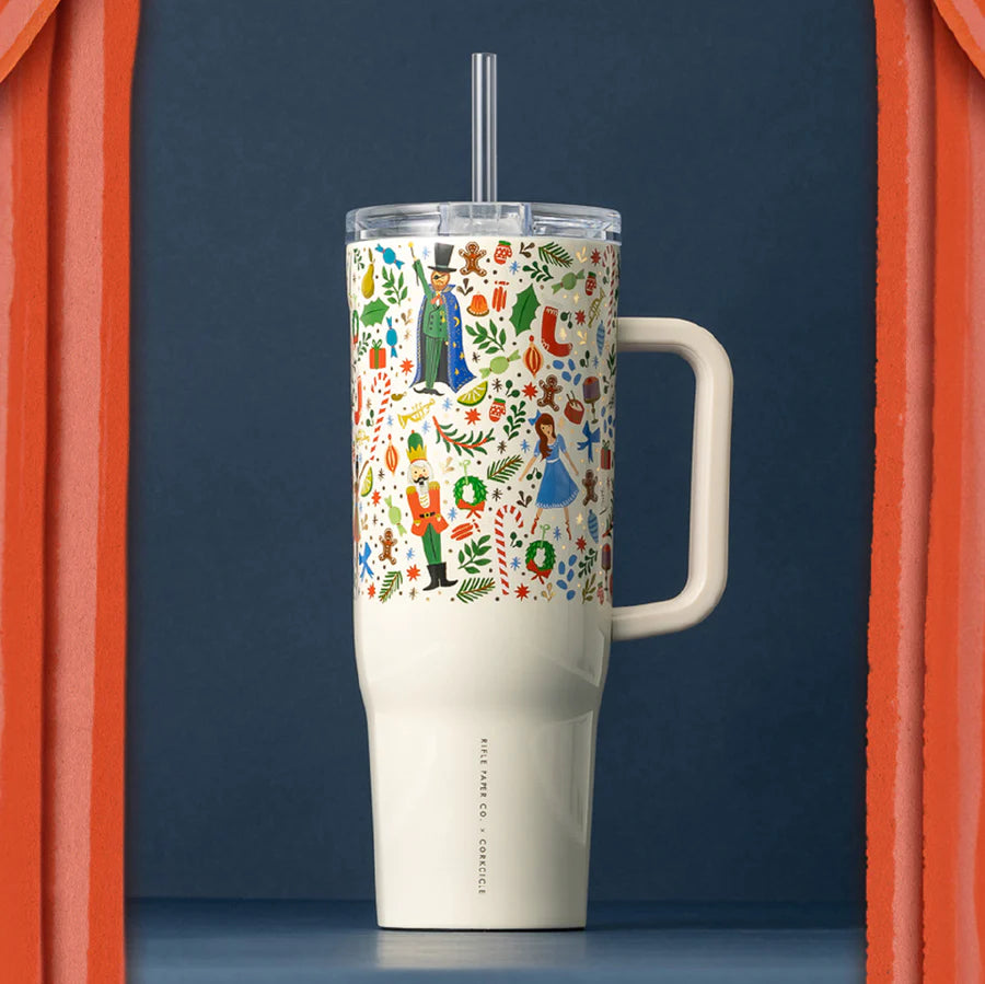 The Rifle Paper Co. x Corkcicle Nutcracker collection features tons of illustrated details from the classic ballet, all hand-drawn, accented in gold foil, and captured with show-stopping charm. Cruiser, our largest straw cup to date, keeps 40 oz of your favorite beverage cold for up to 20 hours, allowing you to enjoy everyday adventures without giving your hydration needs a second thought. It features an exclusive dual-function sip + straw spill-proof lid, a comfy soft-grip handle, and a stay-put silicone bottom to keep it upright no matter your destination or how many stops you take on the way.