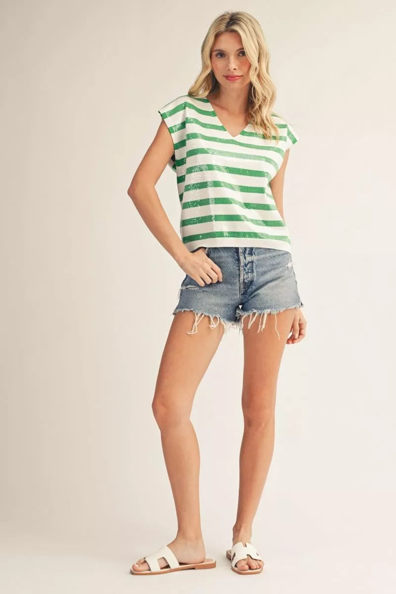 Green And White Sequin Top