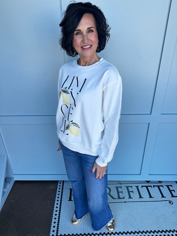 Designed in soft brushed fleece, this relaxed sweatshirt features a bright lemon graphic that feels like a burst of sunshine. Its cozy weight and easy fit make it perfect for lounging or layering.