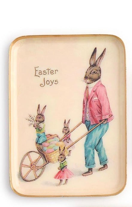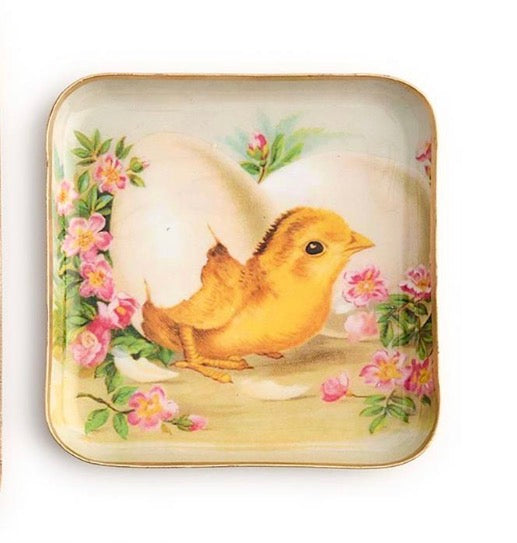 Regular price $7.97 USDAdd nostalgic charm to your spring dècor with these decorative metal trays, each featuring a different vintage-inspired Easter scene. From playful bunnies to cheerful chicks and colorful eggs, the designs evoke the warmth of classic holiday illustrations. Crafted from iron with an enamel finish, these trays are perfect for tabletops, shelves, or wall displays.