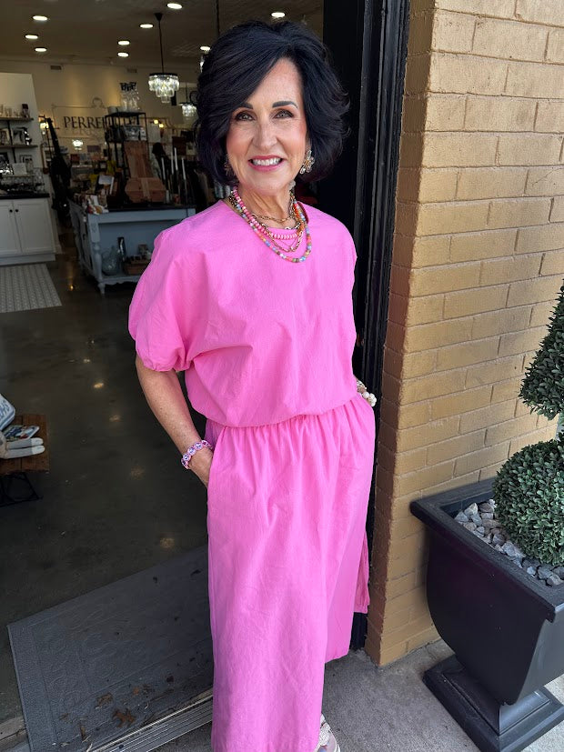 Twirl into spring with this vibrant hibiscus pink set that's pure joy! The bubble top features a fun, voluminous silhouette that's both comfy and eye-catching, while the coordinating skirt offers a flattering fit that moves with you. Perfect for playdates, casual outings, or whenever you want to add a pop of color to your day. Mix, match, or wear together—this dynamic duo is ready for adventure!