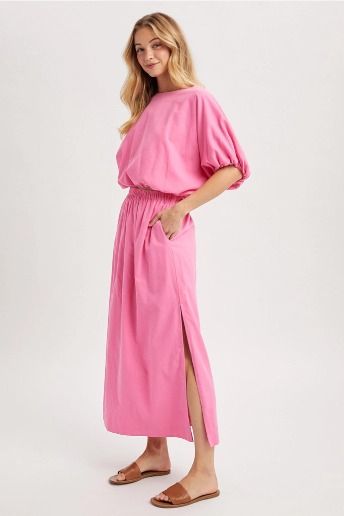 Hibiscus Pink Bubble Top and Skirt Set